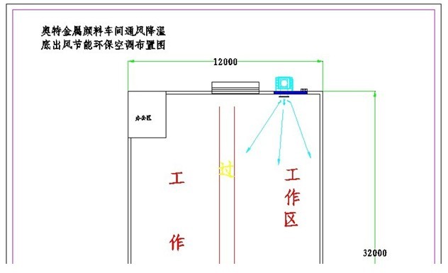風壓可達到 200 帕,可在室內形成正壓,將廠房里大量高溫異味空氣從打 開的門窗排往室外。空調安裝時保證足夠的高度,