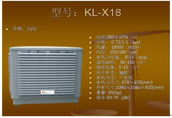 低能耗,性能穩定,集通風,降溫,除塵于一體。多風向角度自動調節,整機可移動,因該機組是通風水的//www.klhb/pro_bw.asp?classa=1&classb=1">蒸發吸熱原理降溫,
